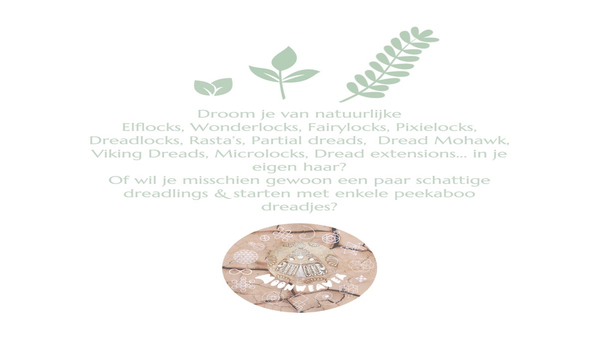Boek je afspraak voor dreadlocks of reiki via e-mail naar esther@moonweaver.be of via DM op Instagram @maanwever